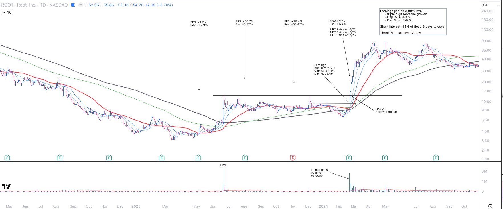 - ROOT in early 2024, a growth EP where Revenue growth was +173% and EPS, the second quarter of greater than 39% Revenue growth for the company. EPS growth was +60%. The Earnings gap was met with tremendous volume.